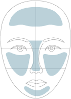 A kombinált bőr egyes területeken száraz, máshol zsíros. A zsíros bőr gyakori a T-zónában (homlok, orr és áll).
